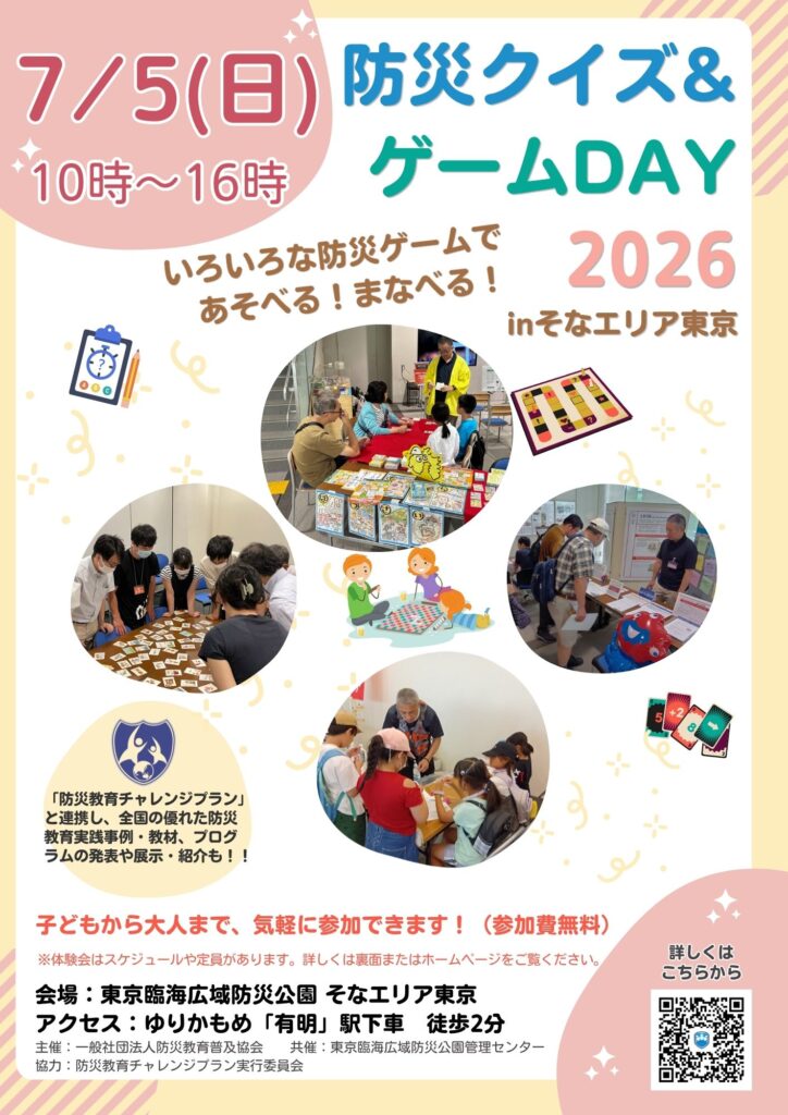 2016年より本協会と東京臨海広域防災公園管理センターで主催している防災クイズ・防災ゲームの体験イベント「防災クイズ&ゲームDay」を2026年も開催します!
